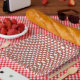 A rolled-up piece of wrapping paper with a festive plate
