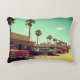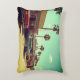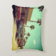 A scene from the 1970s, is on the front and back of this bed, sofa or chair, throw pillow.