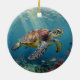 A Sea Turtle and Sun Rays in the Ocean Blue Ceramic Ornament