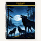 A serene night with wolves howling at the moon notebook