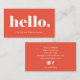 These whimsical and super stylish, blue and white business cards say simply "hello." in bold, modern white text on an orange red background. Easily add your social media contact info on the back.