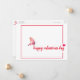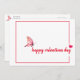 This is a postcard style greeting card. A simple design with type. A thin red border surrounds this script type, that reads "happy valentines day. There's a pink butterfly and a red heart for accents. Also there are ruled lines for the mailing address. If you don't want to use this as a postcard, you can remove the ruled lines and use this card with an envelope.