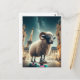 An adorable sheep skateboarding in a city at night funny AI generated art