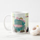 A sloppy workman fixing a kitchen appliance. coffee mug