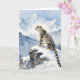 A majestic snow leopard perched on a craggy, snow-covered peak, gazing out at a vast, frozen mountain range. Inside is a poem about snow leopards and the snowy range. The right side is blank so you can add your own message to a friend and family member you just want to say hi or you miss them to.