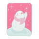 A snowman reaching for a falling snowflake magnet