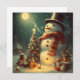 A snowman under the moon card