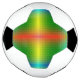 A soccer ball features a colorful geometric