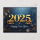 Celebrate the arrival of 2025 with style and luxury. This postcard design features a stunning blend of deep blues, gold accents, and soft sparkles, creating a festive yet refined atmosphere. The bold and elegant '2025' takes centre stage, surrounded by delicate gold and silver ribbons, with star patterns and abstract designs framing the edges. Soft bokeh effects and a smooth gradient from dark to light enhance the modern yet timeless appeal. The phrase 'Happy New Year' is gracefully scripted at the bottom, adding a touch of sophistication. This postcard is the perfect way to usher in the new year with elegance and class