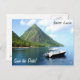 A speedboat in front of the Pitons in Saint Lucia Announcement Postcard