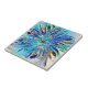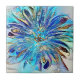 A bright abstract flower done in blue tones.