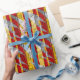 Admit One tickets with a splash of red and yellow running through. This wrapping paper is fully customisable.