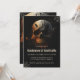 A chilling Halloween party invitation design featuring a detailed skull as the central element, surrounded by eerie autumn motifs and dark atmospheric tones. The invitation sets the stage for a **Cocktails & Costumes Party**, emphasizing spooky elegance with a touch of mystery. Perfect for guests looking forward to a night of haunting drinks, creative costumes, and spine-tingling fun.