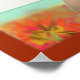 Through the red framed window a spring day is viewed. Abstract design shows a walkway or pier extended out past the edge of the green waterfront. Masses of big red and yellow flowers on green vines hang down outside the four panes of the window. A relaxing scene in a print that can be ordered in sizes as large as 50" X 40"