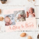 Welcome your little one to the world and share the joy of the season with our elegant Christmas birth announcement card, beautifully titled “A Star Is Born.” Featuring three adorable baby photos on the front and one on the back, this design combines modern typography with festive charm. Personalise it with your baby’s name, birth date, weight, and length, plus a heartfelt thank-you message to friends and family. Perfect for sending holiday greetings while introducing your newest family member. Ideal for winter births, holiday baby showers, or as a keepsake for loved ones. Printed on high-quality card stock with full-colour photo printing for a truly special announcement. Background is peach.