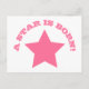 A cute postcard for a newborn baby girl, with a big hot pink star, and A STAR IS BORN slogan.