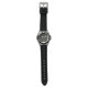 This watch features a sleek black dial with luminous markers, a sporty chronograph-inspired design, and a durable black silicone strap for all-day comfort.