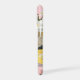 A stylish vintage-inspired portrait on a pink floral phone case featuring a glamorous blonde woman in a hat, with pink cheeks and red lips. Elegant and artistic design for fashion lovers.