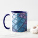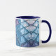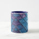 This ceramic mug has a dynamic geometric pattern, composed of translucent diamond colors in purple and blue colors. The slightly shiny appearance and three-dimensional effect give a modern and elegant appearance. Its symmetrical and captivating design adds an artistic touch ideal for a stylish coffee accessory.