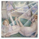 This design features a painting by the Danish artist Gerda Wegener (1886–1940). It is a truly beautiful vintage representation of female beauty and joy. The women are all enjoying the hot weather of a bright summer day in different ways, engaging in various creative and sensual pleasures. One woman is painting a picture a picture with a canvas and easel; another woman is lying on the grass reading a book with her legs held coquettishly up in the air, showing off her high heels; the woman next to her is enjoying the warm sun on her body and bare feet as she sniffs the beautiful fragrant aroma of a pink rose; there is also a woman playing an accordion and enjoying the sweet sound of her music. In the background a couple is resting together on a wall beside the river, watching the attractive women have their fun. It is a truly enchanting and captivating scene that encapsulates the simple joys of summer. The original artwork was painted in 1927.