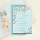 A Sweet Baby is on the way with blue doughnuts in soft pastel watercolors form a “sweet” frame around a cute baby boy shower invitation. Simple as “sweet” as can be & perfect for your event.