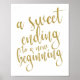 A sweet ending to a new beginning gold 8x10 Sign