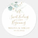 Compliment your classic wedding event with this a sweet ending to a new beginning wedding gold classic round sticker. The design features elegant watercolor green and gold eucalyptus leaves.