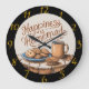 Purchased this online and it got delivered quickly. It was a present for my Dads 70th birthday. He loves clocks so decided to get him one with something written on it. Battery went in and it started working straight away. Dads had no issues with it. Printing was just how it came up online.
