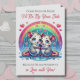 An adorable Valentine's Day card with a possum theme. Two adorable cute Kawaii possums cuddling together surrounded by a rainbow and hearts with a cute pun. "come rain or shine I'll be by your side, because I'm impossibly in love with you! Cute, romantic and flirty for any couple. Inside is a word search with words related to love and Valentine's Day.