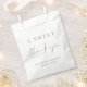 A chic bag for your wedding party favours featuring "A Sweet Thank You" in a modern gold script and elegant gold typography, your names and wedding date.