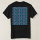 A symmetrical pattern of blue motifs on a textile T-Shirt