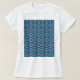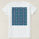 A symmetrical pattern of blue motifs on a textile T-Shirt