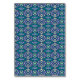 A symmetrical pattern of blue motifs on a textile table number