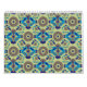 A mesmerising interplay of blue and orange motifs, complemented by subtle accents of yellow and brown, defines this asymmetrical textile design. The careful arrangement of colours creates a sense of balance and harmony, making it a captivating addition to any room.