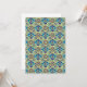 A mesmerising interplay of blue and orange motifs, complemented by subtle accents of yellow and brown, defines this asymmetrical textile design. The careful arrangement of colours creates a sense of balance and harmony, making it a captivating addition to any room.