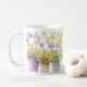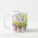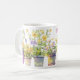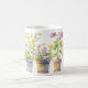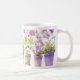 This watercolor illustration showcases an enchanting collection of blooming potted flowers in a variety of soft pastel hues. Each pot is filled with a different type of flower, ranging from delicate yellows to soothing purples, creating a harmonious blend of colours. The flowers are depicted with a light, airy touch, capturing the essence of a sunny garden full of life. Butterflies flutter around, adding a whimsical charm to the scene.