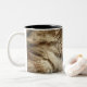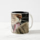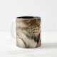 A tabby cat licking his paw. Two-Tone coffee mug