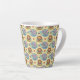 A tall white mug features a colorful pattern of cute cartoon lions and blue elephants on a light yellow background, creating a cheerful and playful tone.