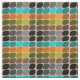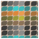Mid-Century Modern Colors of black, teal, orange, brown, grey and shades of green.