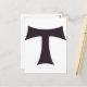 A tau cross is a T-shaped cross, sometimes with all three ends of the cross expanded. It is called a “tau cross” because it is shaped like the Greek letter tau, which in its upper-case form has the same appearance as Latin letter T.