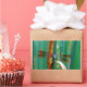 A teal Eyed Dragonfly with cattails Rectangular Sticker