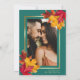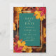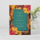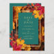 Announce your engagement in style with our exquisite save the date cards. This captivating design features a harmonious blend of teal, gold, and rustic elements, creating a visually stunning and romantic atmosphere. The save the date card showcases a breathtaking backdrop of autumn leaves, adorned with a shimmering gold frame and accented by the vibrant hue of teal.