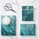 A texture of turquoise feathers and diamond glow wrapping paper sheet