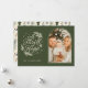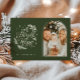 A modern dark green Religious Arch Photo Holiday Card with the chorus lyrics - A Thrill of Hope. On the reverse is a pattern of green and navy holly and pine leaves.