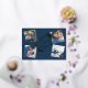 A modern religious real foil Holiday Card with the phrase "A Thrill of Hope" in foil the centre on a navy background, surrounded by 4 of your favourite photos. On the reverse is a pattern of green and navy holly and pine leaves on a cream background.