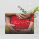 This simple minimalist holiday pregnancy announcement card features a modern handwriting calligraphy script (changeble colour) overlaying a full bleed photo on the front.