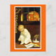 Vintage Halloween greeting card illustration showing a child "spooked" by a jack o'lantern at the window.