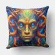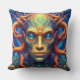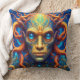 A throw pillow cushion for the home. This pillow has been created for the rich and vibrant colors and the idea of a fantasy worlds to be able to be more abstract and be more creative. An intese look from the being in the portrait is very strong . A great present for a space or fantasy friend or family.