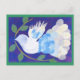 This soothing design shows a dove bearing an olive branch. From an original cut-paper collage.