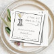 A Tini Bit Closer to I Do Heart Accent Dirty Martini Black and White Bridal Shower Napkins – Martini Themed Bridal Shower Decoration Ideas: A beautiful, unique and elegant personalised bridal shower napkins that blends modern style with timeless sophistication. Featuring a dirty martini with two olives and an elegant coquette black bow against a clean white background, accented with a heart design. The combination of graceful script calligraphy and sleek block font creates a chic, refined look. Set the stage for an unforgettable martini themed bridal shower celebration with loved ones as they shower the bride-to-be. Customise these bridal shower napkins with your event details. Perfect for martini lovers or for a chic and elegant bridal shower theme.
